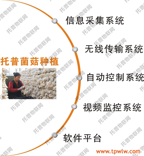 托普菌菇種植包括五大系統(tǒng):1.信息采集系統(tǒng)—可采集空氣溫濕度、土壤溫濕度、光照強(qiáng)度、二氧化碳強(qiáng)度等參數(shù);2.無線傳輸系統(tǒng)—可遠(yuǎn)程無線傳輸數(shù)據(jù);3.自動控制系統(tǒng)—包括噴灌、卷簾、風(fēng)機(jī)、加熱、補(bǔ)光等,達(dá)到作物適合生長環(huán)境;4.視頻監(jiān)控系統(tǒng)—查看作物實時生長情況、病蟲害防治和自動監(jiān)控功能;5.軟件平臺---遠(yuǎn)程數(shù)據(jù)實時查看參數(shù)和自動控制功能,各類報警功能等。