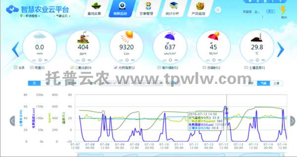?????? 2014年上半年,為了加快基地早日實(shí)現(xiàn)智能化、規(guī)模化、標(biāo)準(zhǔn)化、容器化生產(chǎn),順應(yīng)我國園藝生產(chǎn)發(fā)展的方向,德清綠色陽光農(nóng)業(yè)生態(tài)有限公司開始著手于基地種植與托普物聯(lián)網(wǎng)聯(lián)姻。物聯(lián)網(wǎng)系統(tǒng)嚴(yán)格的環(huán)境條件與種植條件管控,不僅解決了傳統(tǒng)容器苗生產(chǎn)依靠人工經(jīng)驗(yàn)管理而產(chǎn)生的誤差問題,同時還減少了人力成本高、縮短了種苗生長周期。??????? 托普云農(nóng)物聯(lián)網(wǎng)系統(tǒng)采集溫室內(nèi)空氣溫濕度、土壤水分、土壤溫度、二氧化碳、光照強(qiáng)度等實(shí)時環(huán)境數(shù)據(jù),通過中繼節(jié)點(diǎn)傳輸?shù)娇刂浦行?,由中心平臺系統(tǒng)將最新監(jiān)測數(shù)據(jù)與預(yù)先設(shè)定適合農(nóng)作物生長的環(huán)境參數(shù)作對比,若出現(xiàn)偏差,計算機(jī)會自動發(fā)送至指令,智能啟動與系統(tǒng)相連的通風(fēng)機(jī)、遮陽、加濕、澆灌等設(shè)備進(jìn)行工作,直到各數(shù)據(jù)恢復(fù)到正常范圍之內(nèi)。