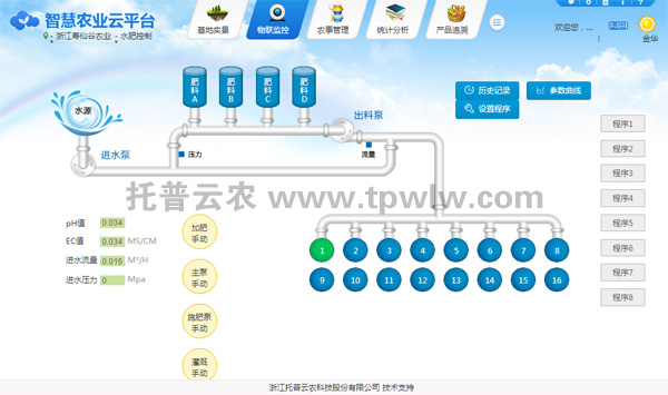 壽仙谷源口基地全景托普云農(nóng)為壽仙谷源口基地建設(shè)的水肥一體化智能監(jiān)控系統(tǒng)主要涵蓋施肥機(jī)系統(tǒng)、過(guò)濾系統(tǒng)、前端灌水器系統(tǒng)、遠(yuǎn)端控制灌溉系統(tǒng)(包括手機(jī)APP和電腦PC端)。