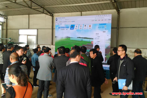 圖為:交流會現(xiàn)場朱旭華副總經(jīng)理為大家講解演示“托普智能育秧系統(tǒng)”
