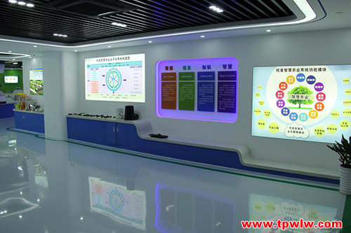 以往客戶了解自己感興趣的產(chǎn)品或者方案只能通過宣傳彩頁(yè)或者網(wǎng)站等渠道,為了給用戶更直觀的體驗(yàn),加快用戶對(duì)產(chǎn)品的了解。2015年12月,托普云農(nóng)在公司總部著手打造立體化、專業(yè)化的現(xiàn)代農(nóng)業(yè)展廳。2016年3月展廳落成,并對(duì)前來(lái)考察的用戶開放。