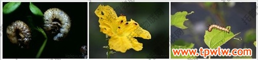 圖為:啃食植株的蠐螬、瑩蟲、毛毛蟲