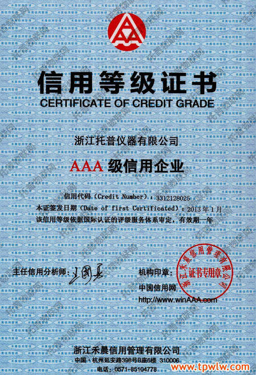 到目前為止,未發(fā)現(xiàn)本公司在工商、稅務(wù)、法律訴訟等部門有任何與之相關(guān)的不良記錄存在,而且在省財(cái)政廳采購監(jiān)督管理處也未發(fā)現(xiàn)本公司有任何相關(guān)不良處罰記錄,最終確定本公司2013年信用級(jí)別為AAA級(jí)級(jí)信用企業(yè)。