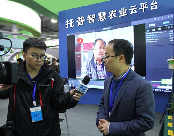 這一番“互聯(lián)網(wǎng)+農業(yè)”的介紹也獲得了浙江衛(wèi)視的關注。記者來到托普云農展位,公司副總朱旭華向記者介紹了公司獲得的科研成就及展出的智能化軟硬件系統(tǒng)。主要有:托普云農農業(yè)“四情”監(jiān)控系統(tǒng)、設施農業(yè)監(jiān)控系統(tǒng)、水肥一體化監(jiān)控系統(tǒng)、智慧農業(yè)云平臺等農業(yè)物聯(lián)網(wǎng)系統(tǒng)、平臺及土壤墑情監(jiān)控系統(tǒng)硬件、農藥殘留速測儀、相關智能硬件設備(如遠程傳輸智能蟲情測報燈、溫室通、大田六合一無線傳感器、植物本體傳感器)。