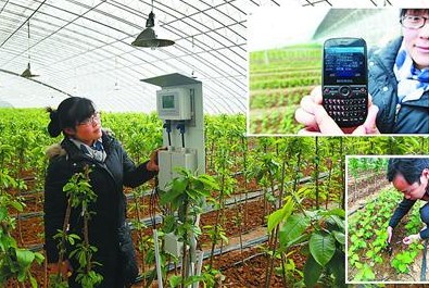 8月24日,管理員在山東省濟(jì)南市歷城區(qū)唐王鎮(zhèn)高智能溫室大棚內(nèi)查看智能型農(nóng)業(yè)環(huán)境通用采集控制器、展示手機(jī)召喚短信。近日,一個(gè)由太陽能供電的物聯(lián)網(wǎng)農(nóng)業(yè)信息化高智能溫室大棚在唐王鎮(zhèn)建成啟用。該溫室大棚根據(jù)不同植物生長條件設(shè)定參數(shù),利用棚內(nèi)設(shè)置的氣象百葉箱及光照度、二氧化碳和土壤水分等多個(gè)探頭,定時(shí)將數(shù)據(jù)信息傳輸給控制系統(tǒng),及時(shí)對(duì)棚內(nèi)進(jìn)行調(diào)節(jié)。如遇到大風(fēng)、大雨等惡劣天氣超過設(shè)定參數(shù)時(shí),便會(huì)通過手機(jī)進(jìn)行短信報(bào)警,實(shí)現(xiàn)了遠(yuǎn)程監(jiān)控,確保棚內(nèi)植物“幸?!弊聣殉砷L。