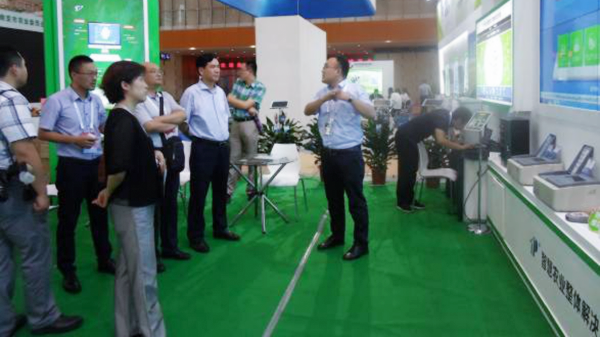 托普云農(nóng)現(xiàn)場工作人員向蒞臨展區(qū)的農(nóng)業(yè)部門領(lǐng)導(dǎo)介紹智慧農(nóng)業(yè)云平臺