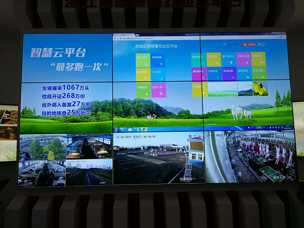 本屆農(nóng)博會信息化元素顯著,重點展出農(nóng)業(yè)數(shù)據(jù)庫建設(shè)、農(nóng)業(yè)智慧管理、追溯體系建設(shè)、農(nóng)產(chǎn)品電子商務發(fā)展。在農(nóng)博會上,由托普云農(nóng)子公司浙江森特信息技術(shù)有限公司為浙江省畜牧獸醫(yī)局研發(fā)的浙江省智慧畜牧云平臺也亮相現(xiàn)場。 動態(tài)在線監(jiān)管,實時顯示豬舍、消毒通道、屠宰車間等畫面。