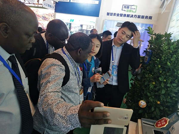 農(nóng)業(yè)信息化是農(nóng)業(yè)現(xiàn)代化的標(biāo)志,為此海南集中優(yōu)勢(shì)積極開展海南特色農(nóng)產(chǎn)品的電商促銷、農(nóng)產(chǎn)品質(zhì)量安全追溯以及農(nóng)業(yè)的信息化服務(wù)。在海南,瓜果種類資源豐富多樣。為提升現(xiàn)場(chǎng)參展人員的農(nóng)產(chǎn)品質(zhì)量安全溯源體驗(yàn),托普云農(nóng)還將橘樹搬進(jìn)展區(qū)。分布在展區(qū)的兩棵橘子樹,更是獲得國(guó)外友人的好奇與關(guān)注。通過手機(jī)掃描二維碼,便能查看到橘子的光照溫度、土壤溫濕度等生長(zhǎng)環(huán)境信息。如此智能化的操作,讓國(guó)際友人贊嘆不已。