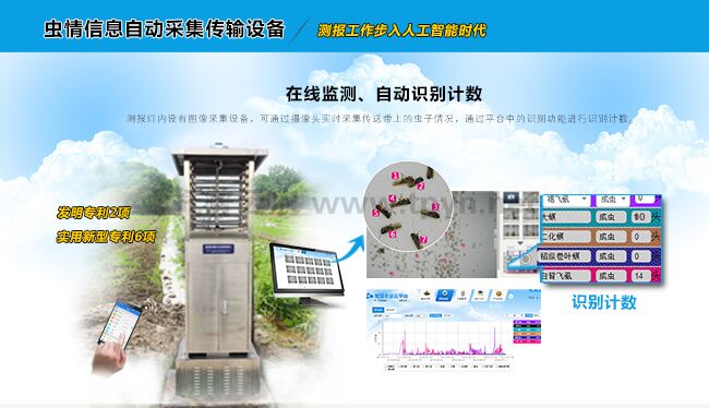 智慧型蟲情測(cè)報(bào)燈是新一代圖像識(shí)別式蟲情測(cè)報(bào)工具,可全天候工作。在無人監(jiān)管的情況下,系統(tǒng)運(yùn)用物聯(lián)網(wǎng)、互聯(lián)網(wǎng)、人工智能、大數(shù)據(jù)等技術(shù)自動(dòng)采集、傳輸、分析、存儲(chǔ)和展示蟲情數(shù)據(jù),并提供自動(dòng)化和智能化的分析和管理決策數(shù)據(jù)。通過電腦、手機(jī)等終端設(shè)備,便可對(duì)作物病蟲害實(shí)行遠(yuǎn)程實(shí)時(shí)監(jiān)測(cè)、在線識(shí)別、自動(dòng)計(jì)數(shù),是植保人員的“千里眼”和“聽診器”。智慧型蟲情測(cè)報(bào)燈亦是植物保護(hù)提升工程的重要智能裝備,它與農(nóng)作物病蟲害實(shí)時(shí)監(jiān)控物聯(lián)網(wǎng)設(shè)備、蟲情信息自動(dòng)采集傳輸設(shè)備、農(nóng)田小氣候自動(dòng)采集傳輸設(shè)備、農(nóng)作物病菌孢子自動(dòng)捕捉培養(yǎng)系統(tǒng)等設(shè)備配套使用,是農(nóng)作物病蟲疫情監(jiān)測(cè)點(diǎn)建設(shè)中必不可少的智能測(cè)報(bào)工具。