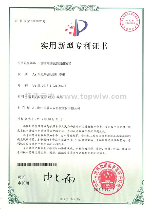 當(dāng)前位置: 首頁 > 托普新聞 > 蟲情測(cè)報(bào)取得新突破!托普云農(nóng)獲國家實(shí)用新型專利