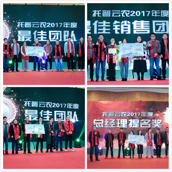 農(nóng)業(yè)信息化是農(nóng)業(yè)現(xiàn)代化發(fā)展的基礎(chǔ)。過去一年,托普云農(nóng)在農(nóng)業(yè)信息化的道路上屢獲農(nóng)業(yè)部門和行業(yè)的認可。憑借前沿的技術(shù)研發(fā)與落地應(yīng)用能力,先后榮獲世界物聯(lián)網(wǎng)博覽會、匠農(nóng)杯等業(yè)內(nèi)頂級大獎。在榮耀的成績背后,離不開一大批優(yōu)秀員工和團隊的辛勤付出。針對2017年表現(xiàn)突出的團體和個人,現(xiàn)場頒發(fā)出年度銷售精英、創(chuàng)新改善、優(yōu)秀員工獎、最佳新銳獎等個人獎項以及最佳團隊、總經(jīng)理提名等團隊類獎項。