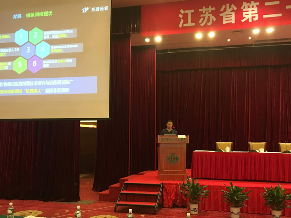微雨眾卉新,一雷驚蟄始。3月6日至7日,以“綠色防控,減量用藥”為主題的“江蘇省第二十一屆農(nóng)藥與藥械信息技術(shù)交流會(huì)”在南京國(guó)際會(huì)議中心如期進(jìn)行,來(lái)自江蘇省植保系統(tǒng)各植保站站長(zhǎng)、技術(shù)人員,農(nóng)墾集團(tuán)代表、病蟲(chóng)害專業(yè)化防治服務(wù)組織等400多人參會(huì)。作為國(guó)內(nèi)植保領(lǐng)域領(lǐng)先的行業(yè)代表,托普云農(nóng)受邀出席會(huì)議,并發(fā)表主旨演講。