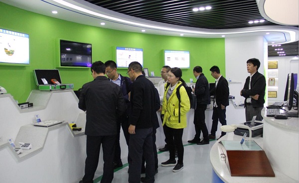 圖為:朱旭華副總經(jīng)理向謝主任介紹智能硬件產(chǎn)品