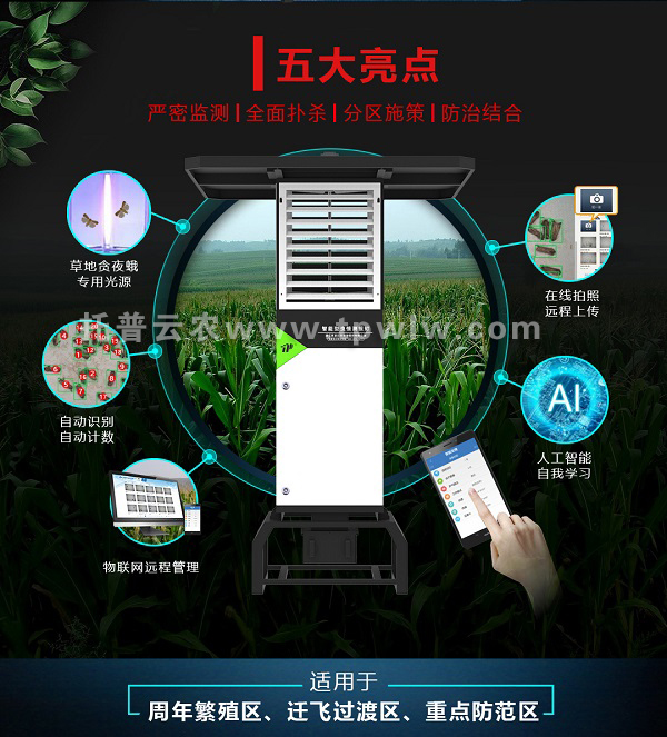 - 智能蟲情測報燈全新升級,可自動識別草地貪夜蛾發(fā)表日期:2019-07-04 來源:托普云農(nóng) 瀏覽次數(shù):5157次