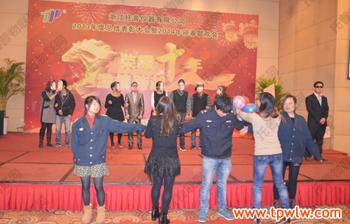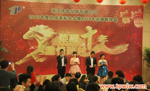 - “榮耀十年、激情跨越”之托普儀器2013年年終晚會發(fā)表日期:2014-01-27 來源:托普云農(nóng) 瀏覽次數(shù):3890次飛雪送蛇歸,駿馬迎春來。2014年1月24日六點整,在一片歡樂祥和的氣氛里,“榮耀十年、激情跨越”之托普儀器2013年年終晚會緩緩拉開序幕。托普儀器260余人的大家庭齊聚一堂,慶祝托普十年華誕,慶祝一年的工作成果,慶祝除舊迎新。晚會伊始,托普儀器陳渝陽總經(jīng)理上臺為本次晚會致開幕詞,為即將到來的馬年向所有托普家人致以新春的問候。