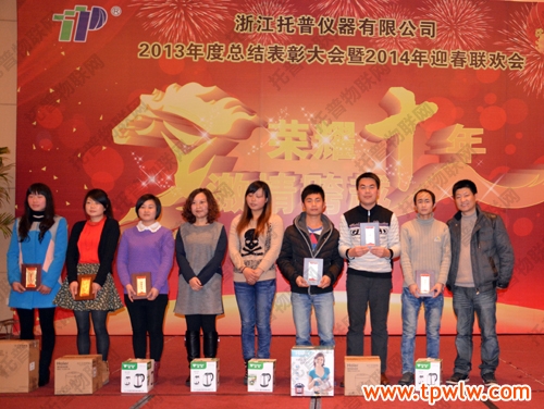 2013年1月24日,浙江托普儀器有限公司2013年度工作總結大會在海外海.納川大酒店隆重召開。經(jīng)過一上午的計劃總結大會后,下午迎來托普10周年之表彰大會。會議由銷售部張文超主持,表彰大會在奮進的進行曲中拉開了序幕。