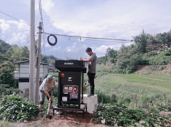 總而言之,目前我國糧食生產(chǎn)形勢依舊嚴峻,重大病蟲害的防控不容懈怠。 6月30日,托普云農(nóng)售后服務(wù)部的工作人員在云南省江城縣完成了最后一臺高空測報燈的安裝,代表著托普云農(nóng)順利完成了本次農(nóng)業(yè)農(nóng)村部下達的“三區(qū)三帶”布防任務(wù)。 高空測報燈是一款利用燈誘吸引遷飛性蟲害的測報燈,針對草地貪夜蛾的生物習性做了技術(shù)匹配與功能優(yōu)化,可在防控工作當中輔助植保人員完成草貪測報工作,為全國布防一盤棋做好基層數(shù)據(jù)采集工作。