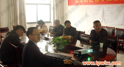 圖為:朱總及技術(shù)人員解說(shuō)演示農(nóng)業(yè)物聯(lián)網(wǎng)系統(tǒng)
