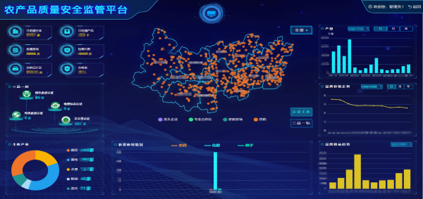 托普云農(nóng)搭建的兩個平臺整合已有的相關系統(tǒng)資料,從不同方面對全縣農(nóng)業(yè)產(chǎn)業(yè)進行分析對比,追溯主體和產(chǎn)品分布、農(nóng)產(chǎn)品檢測動態(tài)等,農(nóng)業(yè)管理部門可以通過圖表、視頻等形式詳細了解農(nóng)業(yè)產(chǎn)業(yè)發(fā)展全貌,實現(xiàn)農(nóng)產(chǎn)品全產(chǎn)業(yè)鏈數(shù)字化監(jiān)管。