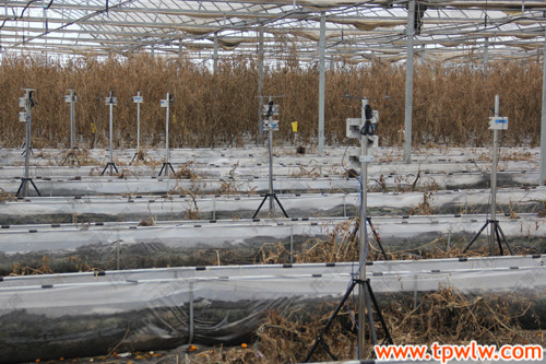 圖為:溫室大棚內(nèi)錯(cuò)落分布的傳感器