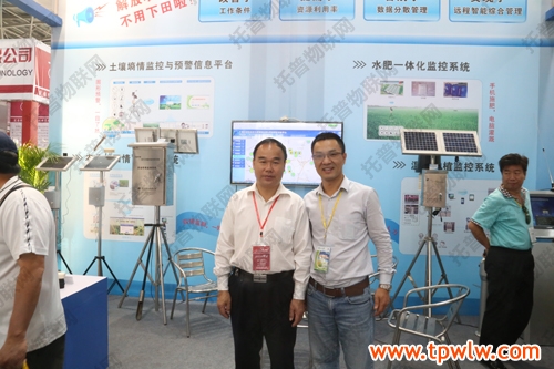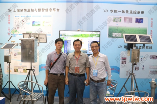 展會期間,農業(yè)部種植業(yè)管理司曾衍德司長、農業(yè)部全國農技推廣中心陳生斗主任、謝建華副主任、北京市土肥站廖洪副站長、甘肅省土肥站崔增團站長、廣西區(qū)土肥站賓士友站長都陸續(xù)到托普儀器展位視察,公司陳渝陽總經理、陳曦經理為一眾領導詳細介紹了物聯網系統(tǒng)及各種儀器設備。謝建華副主任在視察期間與陳渝陽總經理熱切的聊起了“托普土壤墑情監(jiān)測與預警信息系統(tǒng)”,他表示對墑情、旱情的有效把握是提高災情防治、提高種植產量、高效節(jié)水施肥的重要保證。