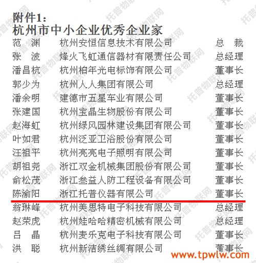 附件:1.杭州市優(yōu)秀中小企業(yè)家名單