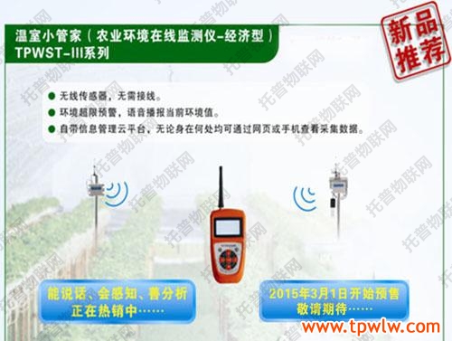 - 新產(chǎn)品上市通知——經(jīng)濟(jì)型農(nóng)業(yè)環(huán)境在線監(jiān)測儀發(fā)表日期:2015-03-27 來源:托普云農(nóng) 瀏覽次數(shù):4581次