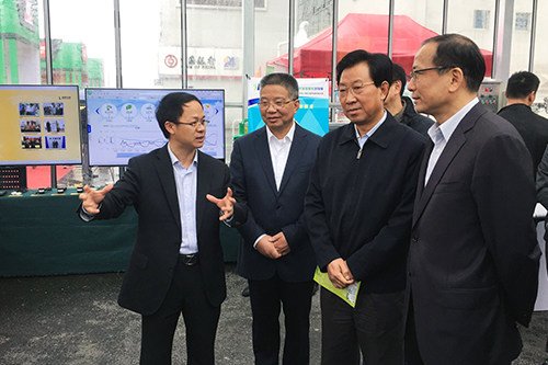 圖為:王輝忠副書記(右二)、黃旭明副省長(右三)、史濟錫廳長(右一)蒞臨托普展區(qū)