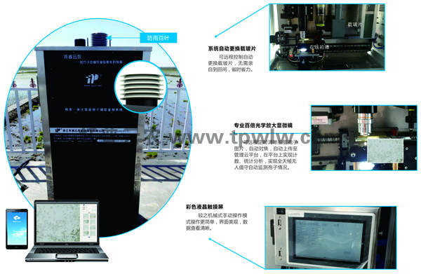?????? 遠(yuǎn)程拍照式孢子捕捉儀采用了條形碼識(shí)別追溯技術(shù)、精度限位技術(shù)、自動(dòng)智能化聚焦技術(shù)、3G無(wú)線傳輸控制技術(shù)等該客機(jī)手段,全天候?qū)崟r(shí)采集分析,節(jié)時(shí)省力??蛇h(yuǎn)程拍攝孢子圖片上傳至管理平臺(tái),實(shí)現(xiàn)農(nóng)業(yè)病菌孢子濃度測(cè)試數(shù)字化,使監(jiān)測(cè)通過(guò)互聯(lián)網(wǎng)及時(shí)了解病害的發(fā)生、發(fā)展情況以及病害的分布區(qū)域,及時(shí)預(yù)防農(nóng)業(yè)病害的發(fā)生和蔓延。