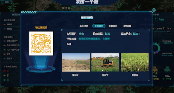 構(gòu)建“一田一碼”,對農(nóng)田地塊進(jìn)行賦碼,以“農(nóng)田碼”貫穿規(guī)劃選址、竣工驗(yàn)收、項(xiàng)目管護(hù)、農(nóng)田種植等全過程數(shù)據(jù),構(gòu)建“碼上監(jiān)管”"碼上服務(wù)”等業(yè)務(wù)場景,實(shí)現(xiàn)全周期串聯(lián),清晰掌提高標(biāo)準(zhǔn)農(nóng)田建設(shè)全空間、全要素、全過程信息,做到“事前事中可預(yù)警”“全程信息可追溯”。