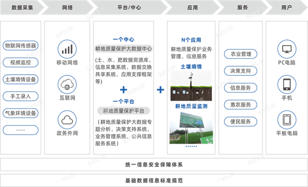 利用“1+1+N”模式,通過(guò)信息技術(shù),構(gòu)建標(biāo)準(zhǔn)化、規(guī)范化的耕地質(zhì)量管理信息系統(tǒng),構(gòu)建一個(gè)耕地質(zhì)量保護(hù)大數(shù)據(jù)中心,一個(gè)耕地質(zhì)量保護(hù)大數(shù)據(jù)平臺(tái)和N個(gè)業(yè)務(wù)子系統(tǒng)。