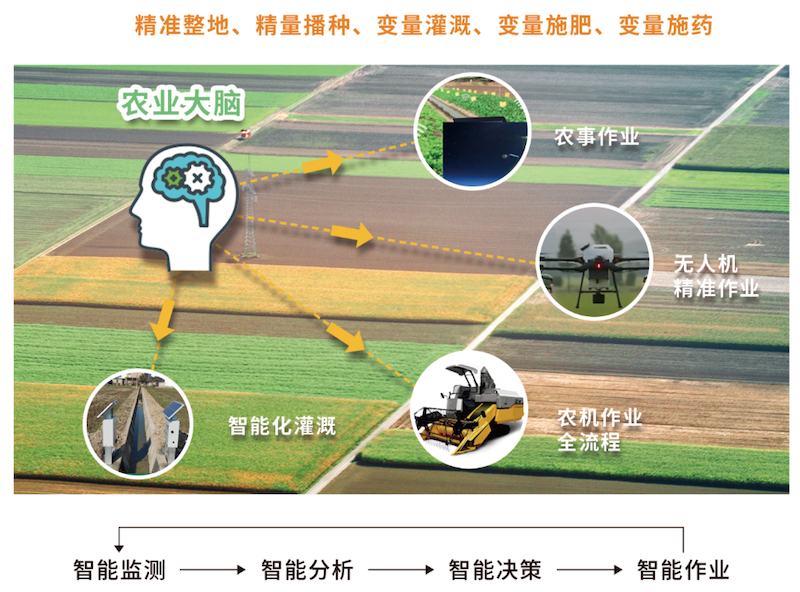 以北斗衛(wèi)星導(dǎo)航技術(shù)為基礎(chǔ),結(jié)合智能農(nóng)事建議,聯(lián)動(dòng)智能裝備,實(shí)現(xiàn)大田生產(chǎn)全程作業(yè)機(jī)械化、管理可視化,農(nóng)場(chǎng)無(wú)人化。